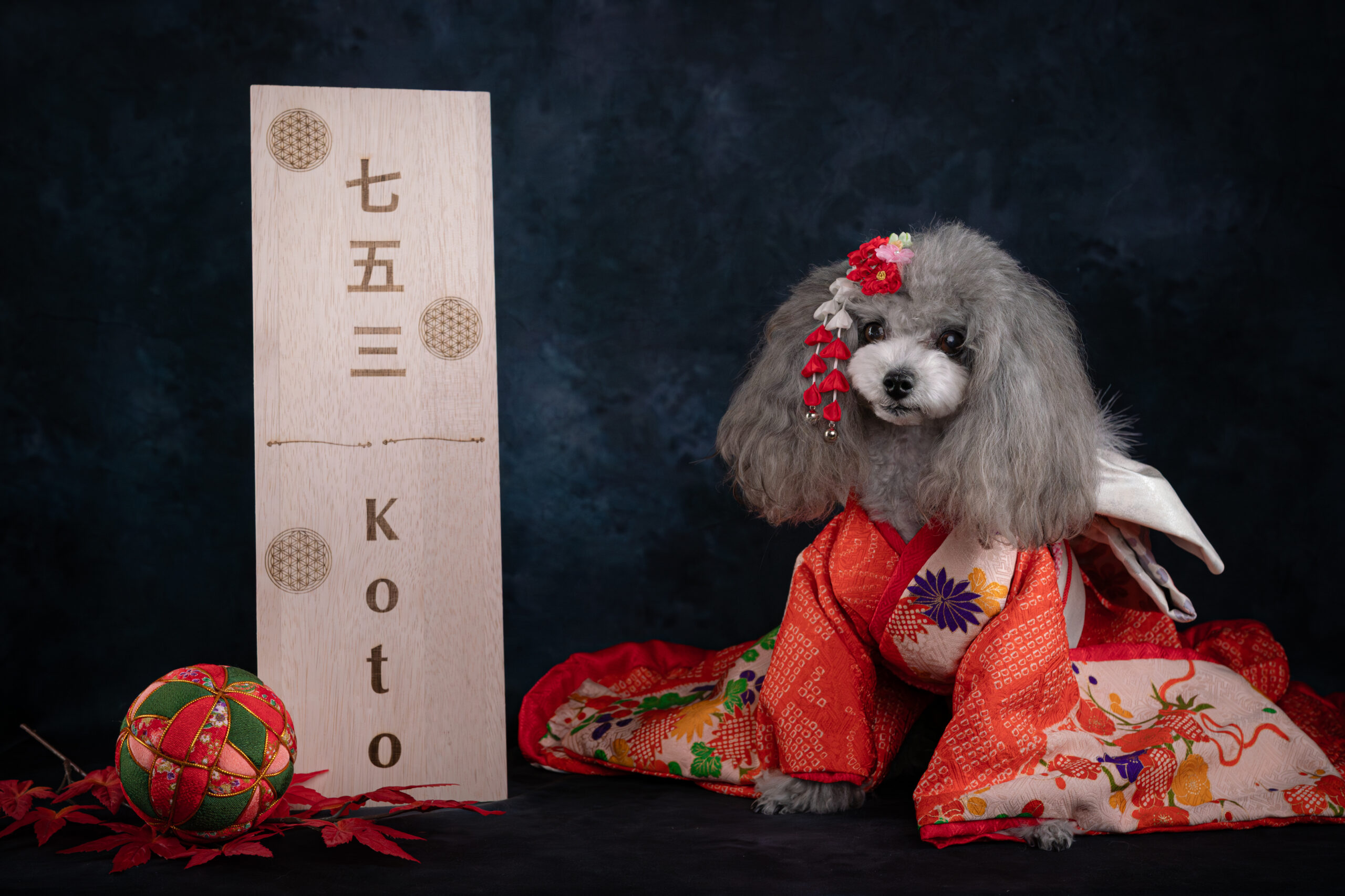 愛犬の毛色やお着物の色に合わせて背景をブラックかホワイトよりお好きな方をお選びいただけます。お好きなご予約時にお知らせください。
